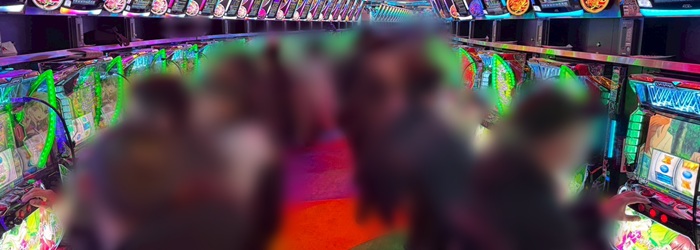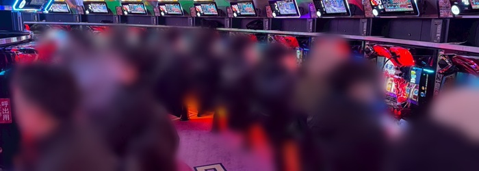 朝イチは「炎炎2」「ゴブスレ2」「モンキー5」「範馬刃牙」「東京喰種」の順に埋まり、「攻殻機動隊」「北斗転生2」「からくりサーカス」「スマスロ北斗」「スマスロ化物語」「アズレン」「マイジャグ5」も満台となった。