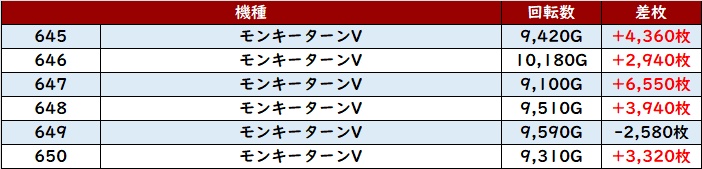 まずは「モンキー5 645~650」が圧巻の数値に!