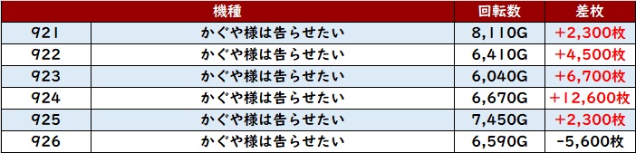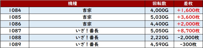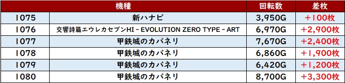 全台回転数8,300G超えの高稼働によって台のポテンシャルが引き出され、全台大幅プラス差枚且つ差枚数+1万枚超えが散見される状態へと優秀な結果に結び付けていた!