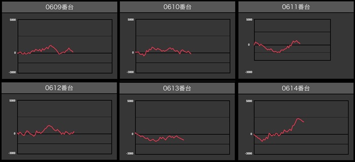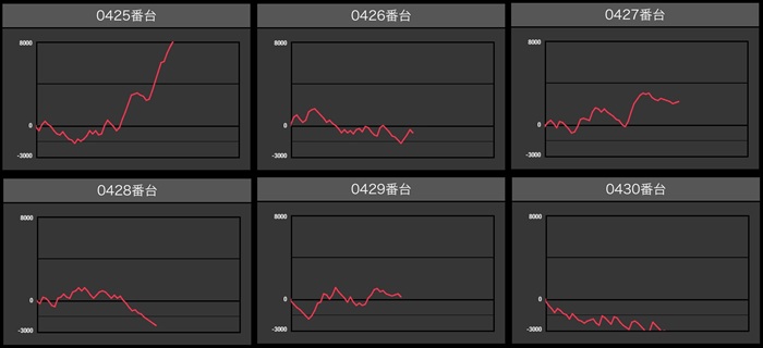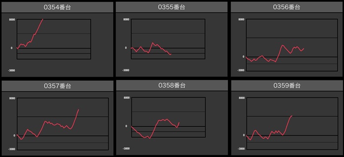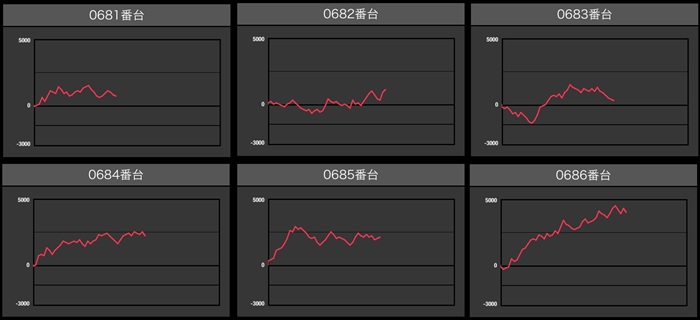 全台プラス差枚に加え、差枚数+8,300枚といった目を見張る出玉感も多数確認出来た。