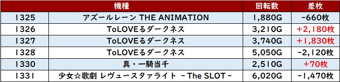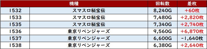 半数が回転数1万G超えとぶん回され、状況が良くなければ成し遂げられないような稼働の高さとなっていた。