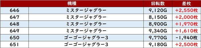 続いて「ミスター~ゴージャグ3 646~651」が好調!