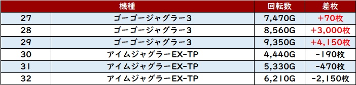 6台中5台が大幅プラス差枚と非常に優れた勝率・出玉感も見せ、状況の良さを周囲にアピールしていた!