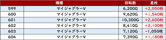また「マイジャグ5 599~604」が状況の良さをアピール!