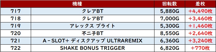 まずは「クレアBT~シェイクBT 717~722」が機種を跨いで大盛り上がり!