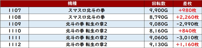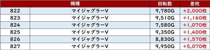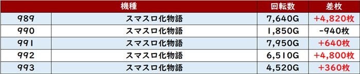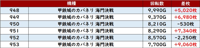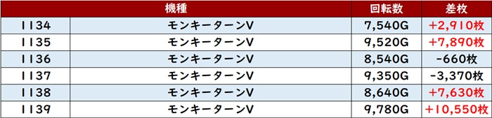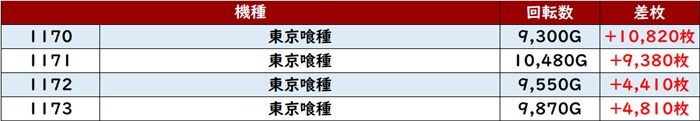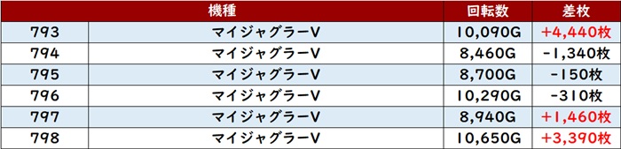 全台回転数9,300G超え差枚数+4,400枚超え、中には差枚数+10,820枚と大台突破する台も現れ、圧倒的存在となっていた!
