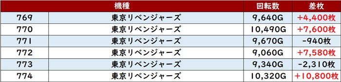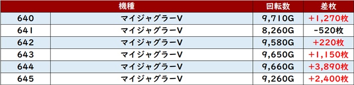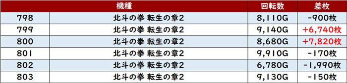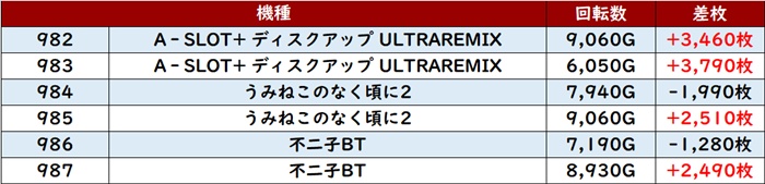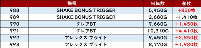 その稼働に相まって全台大幅プラス差枚となっており、大半が差枚数+5,200枚超えと申し分ない結果を残していた!