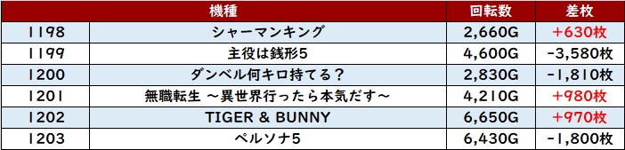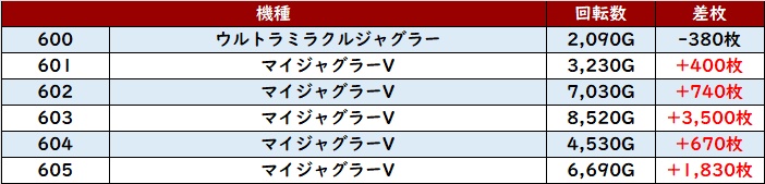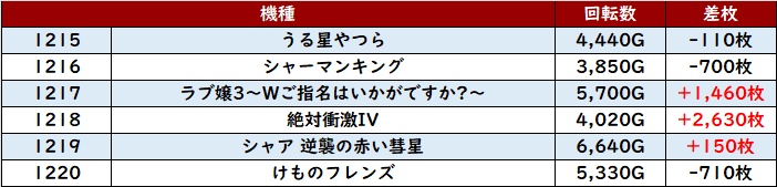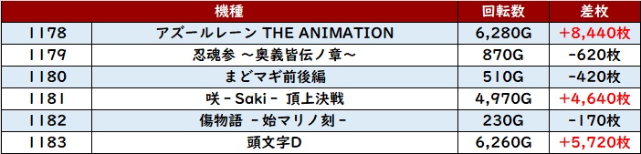6台中4台がプラス差枚&回転数9,200G越えと終日大変盛り上がっていた。