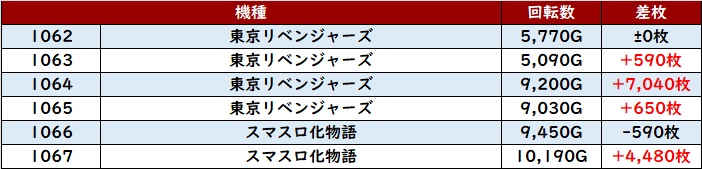 続いて「東京リベンジャーズ~スマスロ化物語 1062~1067」が好調!