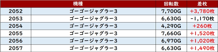 ・1台あたりの平均差枚数:+2,660枚