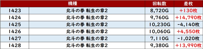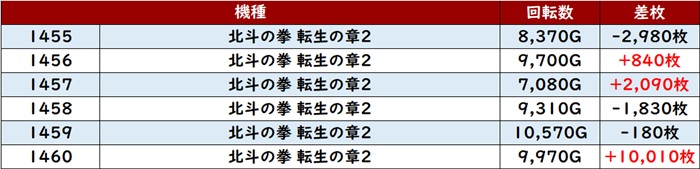 回転数1万G超えや差枚数+10,480枚など、大台突破する台が散見され、新台に相応しい盛り上がりを見せた。