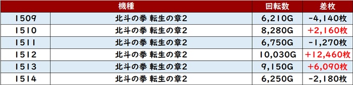 今回は「東京喰種」「カバネリ海門決戦」「北斗11」などメイン機種が好調に!