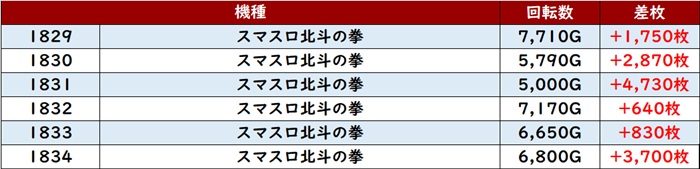 ・1台あたりの平均差玉数:+2,900玉