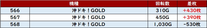 差枚数+14,470枚の台も確認でき、惜しくもマイナスとなってしまった台でもしっかり回転数がついていた為、何か粘る要素があったのだろう。