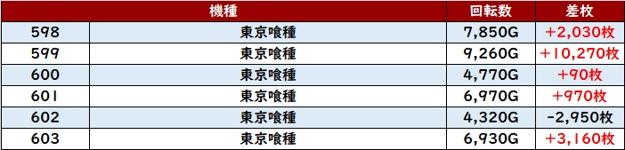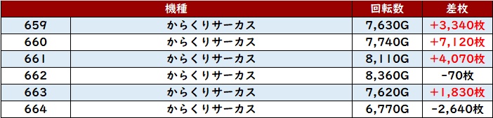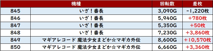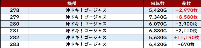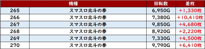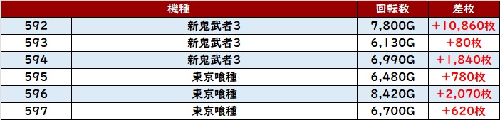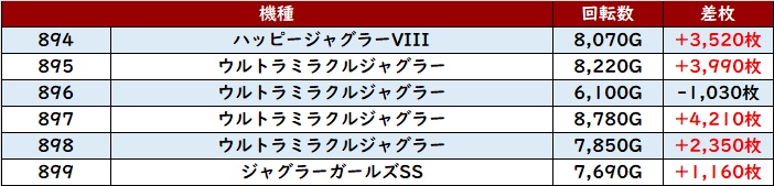 こちらも6台中5台がプラス差枚と高い勝率を誇り、好調さを周囲に見せつけていた。