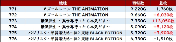 ・1台あたりの平均差玉数:-1,010玉