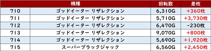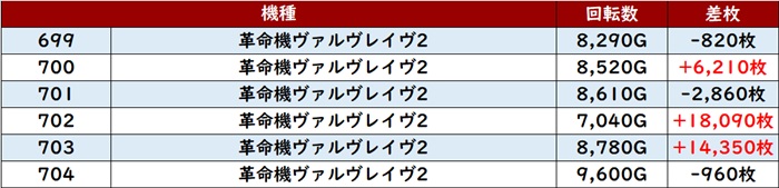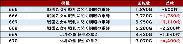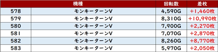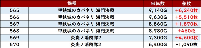 まずは「カバネリ海門決戦~炎炎2 565~570」6台中5台がプラス差枚に!