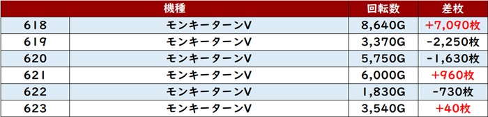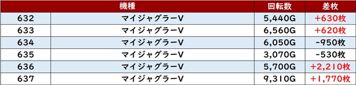 回転数8,640G&差枚数+7,090枚を記録する台が見られ、その他の台も打ち込み次第では更に伸ばせそうであった。