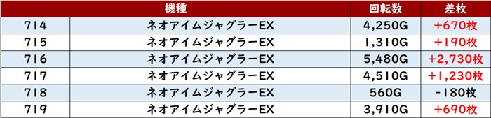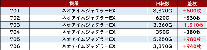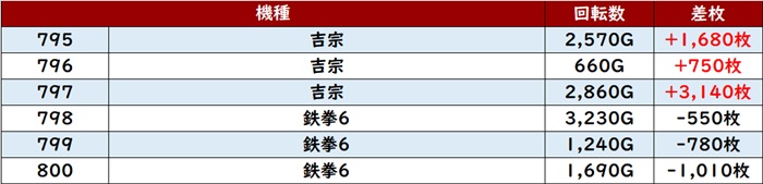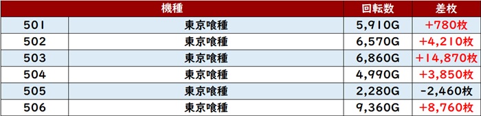差枚数+14,870枚を筆頭に、殆どの台が差枚数+3,800枚超えの大幅プラス差枚を叩き出していた!