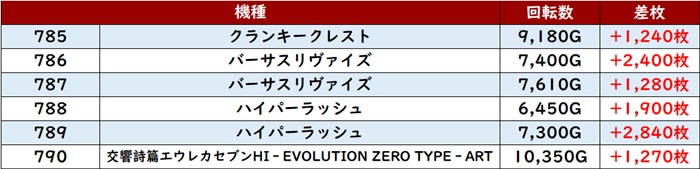 更に「クラクレ~エウレカART 785~790」が4機種にわたって大熱狂!