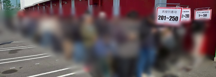 朝イチはBT機アクロス機種、多くのメイン機種人気機種「エウレカART」「カバネリ」「乙女4」「スマスロ秘宝伝」「アズレン」「攻殻機動隊」「無職転生」「モンハンライズ」「東京リベンジャーズ」「いざ番」「ToLOVEるトランス」「スーパーブラックジャック」「スマスロ吉宗」「マギレコ」等が満台、「北斗シリーズ」「範馬刃牙」「スマスロゴッドイーター」「からくりサーカス」Aタイプ等が高稼働となった。