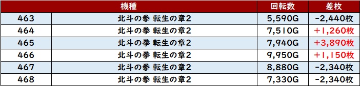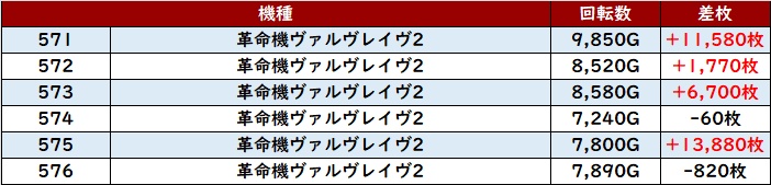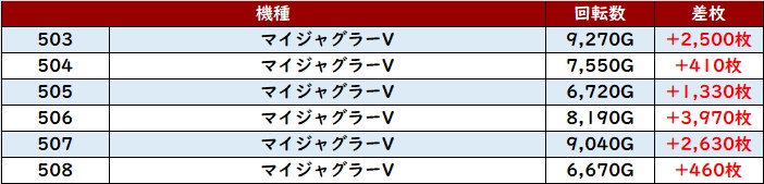 なんと差枚数+1.1万枚超えの台が2台も見られ、圧倒的な存在感を放っていた。