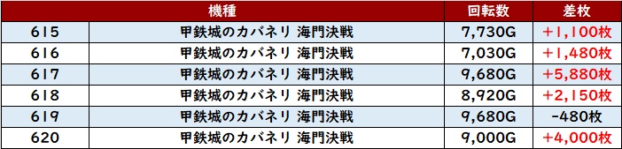 まずは「カバネリ海門決戦 615~620、625~630」がどちらも高い勝率を記録!