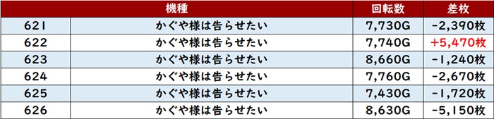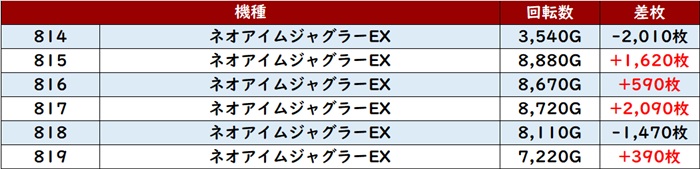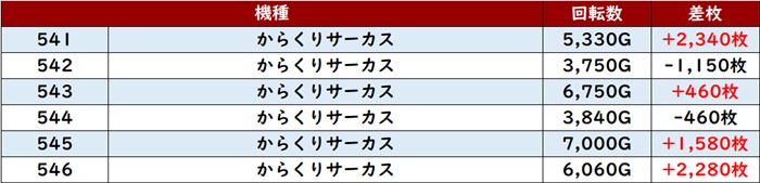 ・1台あたりの平均差枚数:+540枚