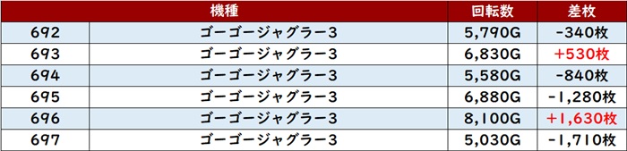・集計機種計42台総差枚数:+22,700枚