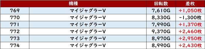 まずは「マイジャグ5 769~774」が大盛況!