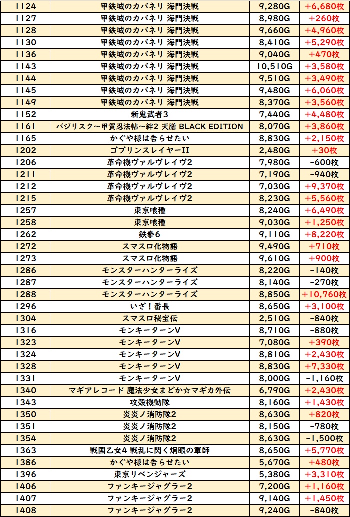 今回は「スマスロゴッドイーター」「からくりサーカス」を筆頭に様々な機種が大活躍!