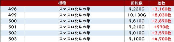 まずは「スマスロ北斗 498~503」が圧巻の光景に!
