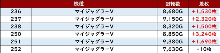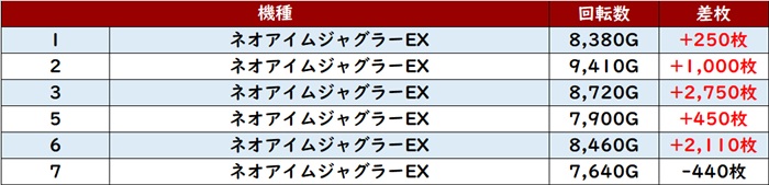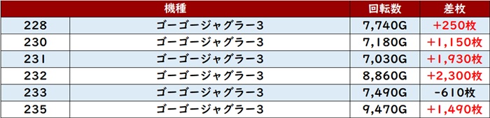 まずは「ジャグラーシリーズ」から6箇所の好調箇所を目撃!