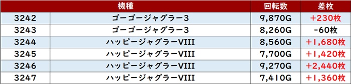 中には差枚数+12,000枚と誰もが羨む結果を残す台まで現れ、輝かしいほどの存在感を放っていた!