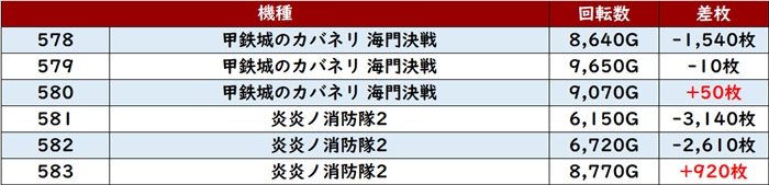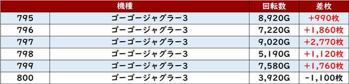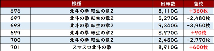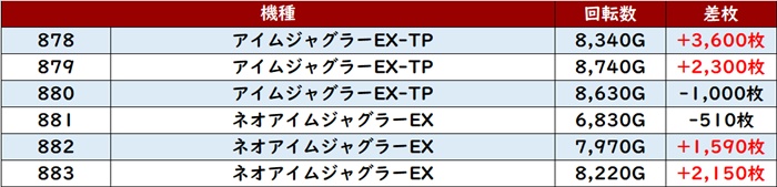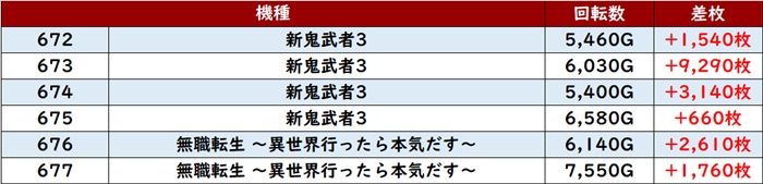 しっかりと打ち込まれた甲斐あってか、6台中4台が大幅プラス差枚と優秀な出玉感に結びついていた。