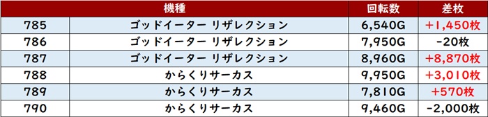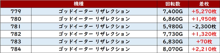 平均差玉数+9,780玉としっかり出玉感を伸ばしており、ボックス内でも特に輝いていた。