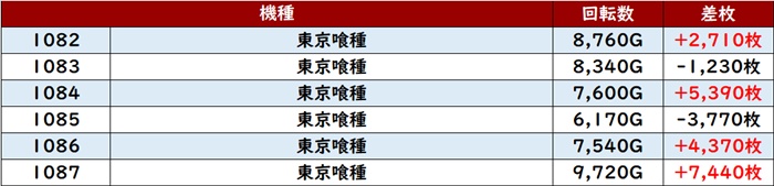 こちらも差枚数+10,400枚と大台を突破する台も見られ、一際活気に溢れていた。