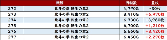まずは「北斗転生2 272~277」が好調さをアピール!