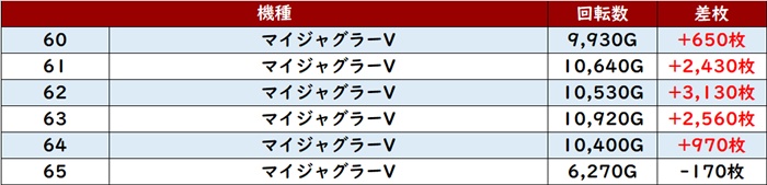 また「マイジャグ5 6~11、60~65」が2箇所で大賑わい!