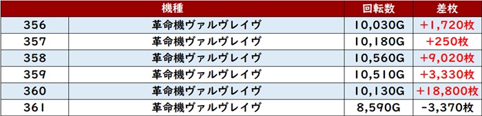 まずは「ヴヴヴ 356~361」の殆どが回転数1万G超えの凄まじい勢いに!