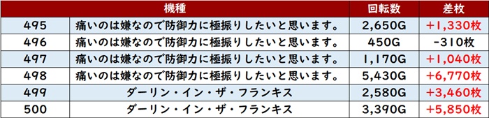 続いて「防振り~ダリフラ 495~500」が好調さをアピール!
