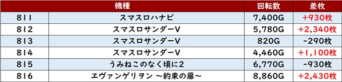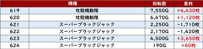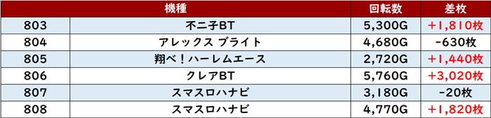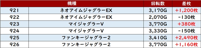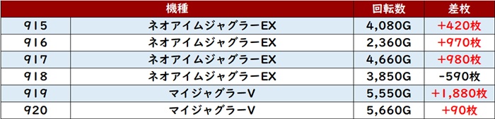 大半が差枚数+4,200枚超えと申し分ない結果を残し、店内の出玉感を向上させた!