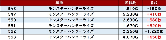 差枚数+6,770枚を筆頭に素晴らしい数値が続出し、稼働次第では更なる出玉感に繋がりそうな雰囲気が感じられた。