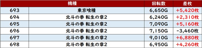 まずは「東京喰種~北斗転生2 693~698」が大盛況!