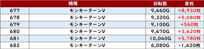 更に「モンキー5 677~682」も「マイジャグ5 936~941」に匹敵する活躍に!