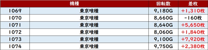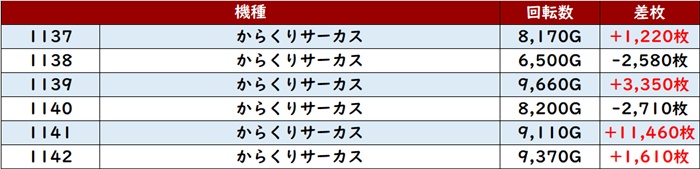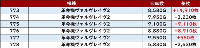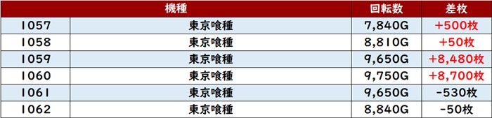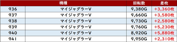 まずは「マイジャグ5 936~941」の殆どが回転数9,300G超えの高稼働を記録!