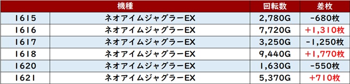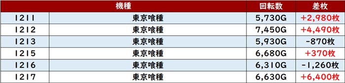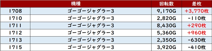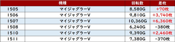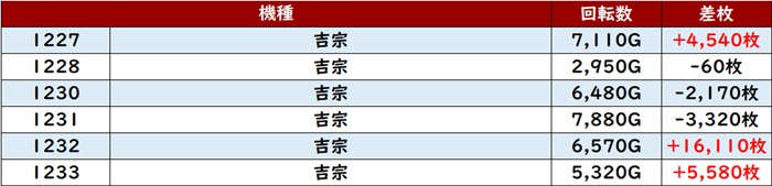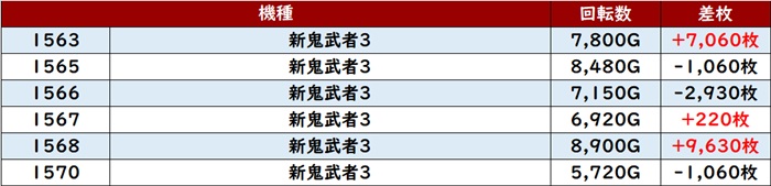 差枚数+10,870枚を筆頭に大きな出玉感が複数見受けられ、更に半数が回転数8,000G超えと熱気に包まれていた!