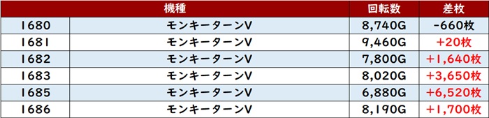 続いて「モンキー5 1680~1686」も素晴らしい結果に!
