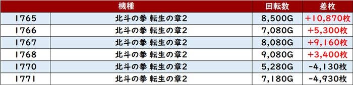 まずは「北斗転生2 1765~1771」が強烈な出玉感に!