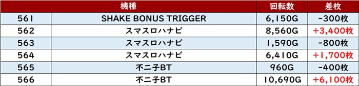 1ボックス目は「大海5SP」が半数以上がプラス差玉と絶好調!